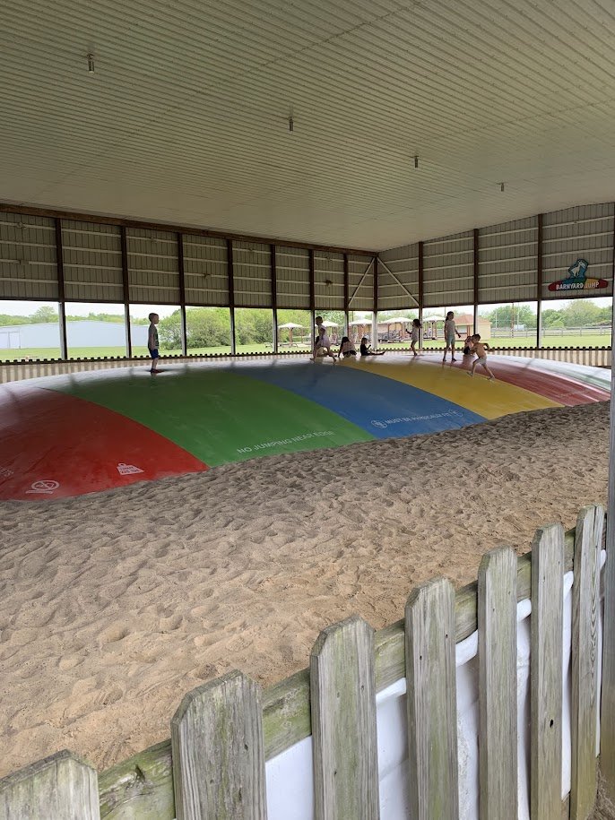 Activities include unlimited access to the jumping pillow, the low ropes course, tug-o-war, the playground, basketball toss, football toss, giant yard games, cornhole, spider web crawl, barnyard butt buster, hop-a-longs, jump-a-roos, and seeing the farm animals. Outside balls and toys are welcome!